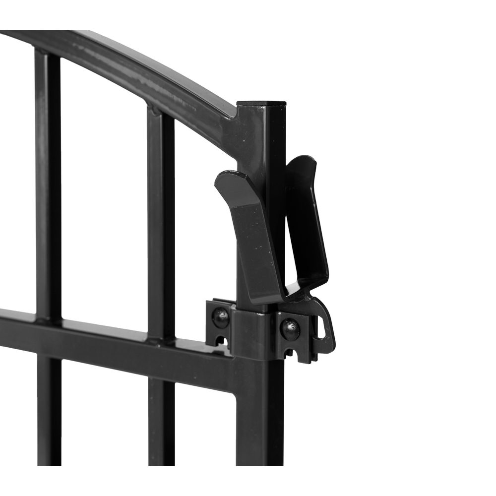 Det här grindlåset är framtaget för Skotte Gardens staketsystem och fungerar lika bra till Klassisk som till Populär svart. Konstruktionen i galvaniserat stål med svart pulverlack (RAL 9005) tål väder och daglig användning. Låset levereras i tre delar och är utformat för att ge smidig öppning från båda sidor – praktiskt vid entré, gång och dubbelgrindar där passagen används ofta. Rekommenderat avstånd mellan stolpe och grind är 50 mm för rätt funktion och snygg passning mot linjen i staketet.