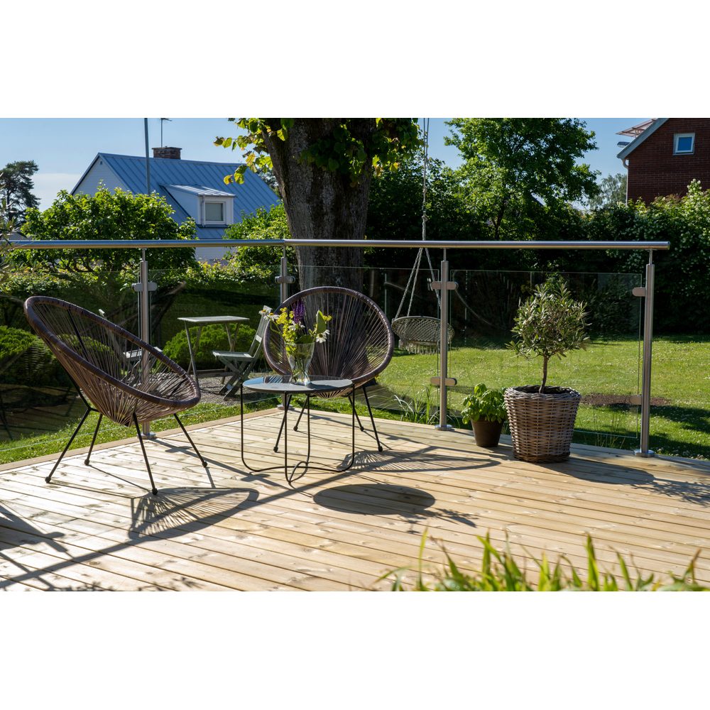 Utforma ditt glasstaket precis som du vill ha det med hjälp av dessa anpassningsbara stolpar i rostfritt stål. Genom att använda våra hörn-, mitt- och ändstolpar tillsammans med våra slitstarka glasskivor kan du bygga det staket du önskar. Denna mittstolpe behövs för att få en stabil konstruktion och ett staket som står stadigt i många år. När du köper denna produkt är det inkluderat en räckeskonsol, platta, kåpa och fyra stycken hållare för glasskivan.