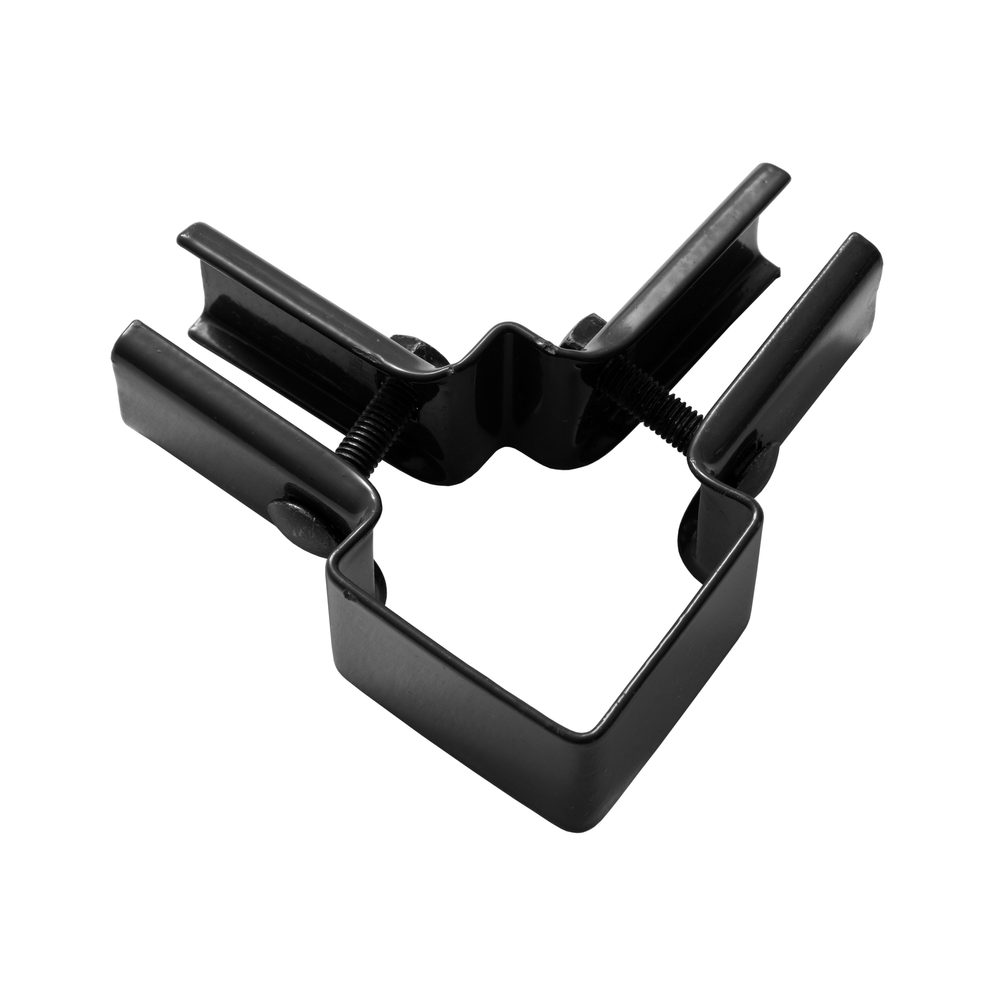 Vinkelfäste i svartlackerat, galvaniserat stål för 90°-hörn. Passar Klassisk och Populär svart och låser sektionen mot stolpen.